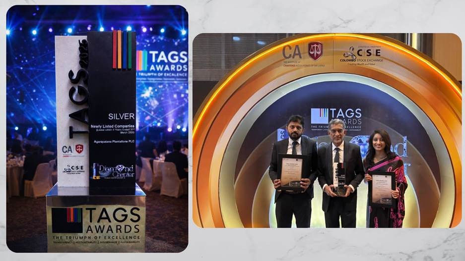 We are pleased to inform you that at the TAGS Annual Report Awards 2025, organized by the Institute of Chartered Accountants of Sri Lanka, held on 12th February 2026 at the Shangri-La Colombo, Agarapatana Plantations PLC was honoured with the Silver Award under “Newly Listed Entities”